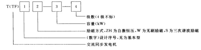 與內燃機配套的交流發(fā)電機目前沒有統(tǒng)一的型號編制,常用的型號編制有以下兩種: