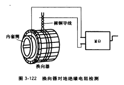 緣電阻檢測。電樞繞組與換向器連接后,所 圖3-122換向器對地絕緣電阻檢測