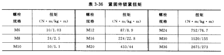 (7)裝配中緊固件的鎖緊扭矩見(jiàn)表3-36。