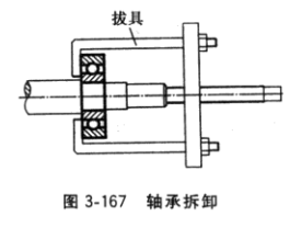(5)拆下軸承。用圖3-167所示拔具卸下軸承,操作過(guò)程切不可碰傷軸承。