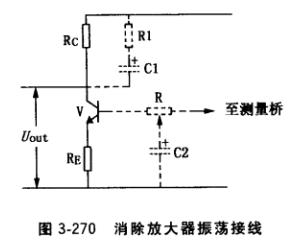③加校正環節(積分延時電路)??稍诜糯笃鞯募姌O電阻RC上并接R1、C1,也可在測量橋放大器之間加入R、C2,如圖3-270中虛線所示,其作用是對測量橋測得的機端信號進行延時,使放大器的輸出電壓UOUT變成較平滑的漸變過程,相當于對測量信號加以移相,使勵磁調節器不至于由負反饋變成正反饋,從而消除振蕩。