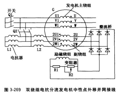 ②在并列運行的雙繞組電抗分流發電機的勵磁繞組間加均衡電阻。